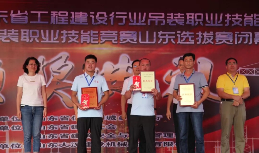 經(jīng)過激烈的角逐,“大漢杯”山東省工程建設(shè)行業(yè)吊裝職業(yè)技能決賽暨2019全國(guó)競(jìng)賽山東選拔賽圓滿閉幕。16支參賽隊(duì)75名專業(yè)選手通過理論考試和實(shí)操比武,山東濟(jì)南市代表隊(duì)、青島市代表隊(duì)、日照市代表隊(duì)分別摘得技能競(jìng)賽團(tuán)體獎(jiǎng)前三強(qiáng)。山東大漢建設(shè)機(jī)械股份有限公司獲得山東省建設(shè)工會(huì)、山東省建筑安全與設(shè)備管理協(xié)會(huì)頒發(fā)的“突出貢獻(xiàn)獎(jiǎng)”。來自濟(jì)南市代表隊(duì)的李寶順從參賽的眾多塔機(jī)頂尖高手脫穎而出,憑借精湛的技術(shù)和穩(wěn)定的臨場(chǎng)發(fā)揮,摘得本此吊裝大賽第一名的桂冠,并獲得由山東省總工會(huì)授予的“山東省五一勞動(dòng)獎(jiǎng)?wù)隆保粷?jì)南市代表隊(duì)的劉順卿、董波,日照市代表隊(duì)的李高華分別獲得二等獎(jiǎng);青島市代表隊(duì)的馬云勝等15名選手獲得三等獎(jiǎng)。